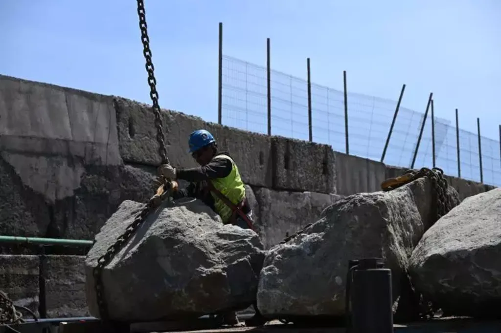 Le port a investi 11 millions de dollars pour le renforcer. Les travaux ont débuté en 2024 avec l'installation de blocs concaves, conçus pour renvoyer les vagues.