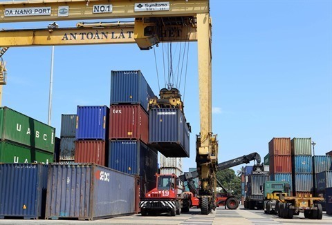 | Manutention de conteneurs au port de Dà Nang (Centre). |