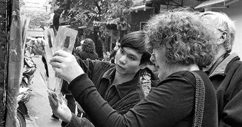 Thang, 19 ans, de la province de Hai Duong, accoste deux touristes suédois. Pensant que Thang est un énième commerçant ambulant, ils refusent gentiment d’un geste de la main. Mais en voyant le panneau «Deaf Group» en plusieurs langues, ils s'arrêtent. Ils achètent dix marques-pages pour 180.000 dôngs. En prenant l'argent, Thang les remercie d’un sourire.
