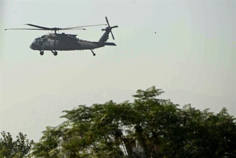 | Un hélicoptère des forces américaines en Afghanistan survole Jalalabad le 2 octobre 2015. |