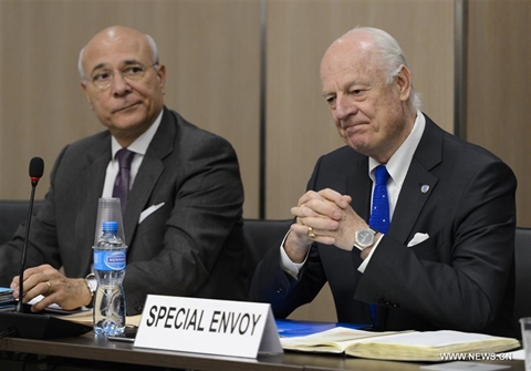 | L'envoyé spécial de l'ONU pour la Syrie, Staffan de Mistura ( à droite ). |