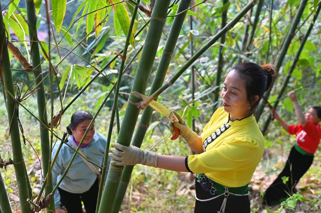 Avec l’expansion de la production, la coopérative crée des emplois réguliers pour de nombreux habitants locaux, principalement des femmes issues de minorités ethniques. Chaque mois, elle offre du travail à des dizaines de personnes dans l’atelier et pour les étapes d’achat, transport et préparation. En plus des revenus issus de la vente du bambou, les habitants bénéficient d’un revenu supplémentaire en travaillant à l’atelier, contribuant à améliorer la vie familiale.