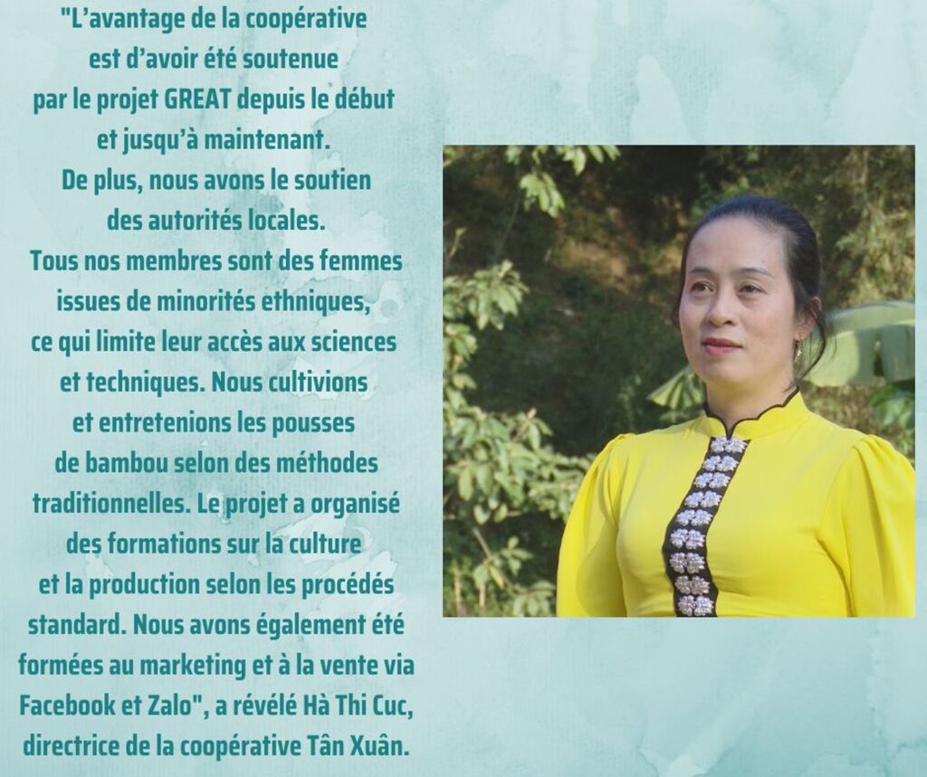 "L’avantage de la coopérative est d’avoir été soutenue par le projet depuis le début et jusqu’à maintenant. De plus, nous avons le soutien des autorités locales. Tous nos membres sont des femmes issues de minorités ethniques, ce qui limite leur accès aux sciences et techniques. Nous cultivions et entretenions le bambou selon des méthodes traditionnelles. Le projet a organisé des formations sur la culture et la production selon les procédés standard. Nous avons également été formées au marketing et à la vente via Facebook et Zalo", a révélé Mme Cuc.