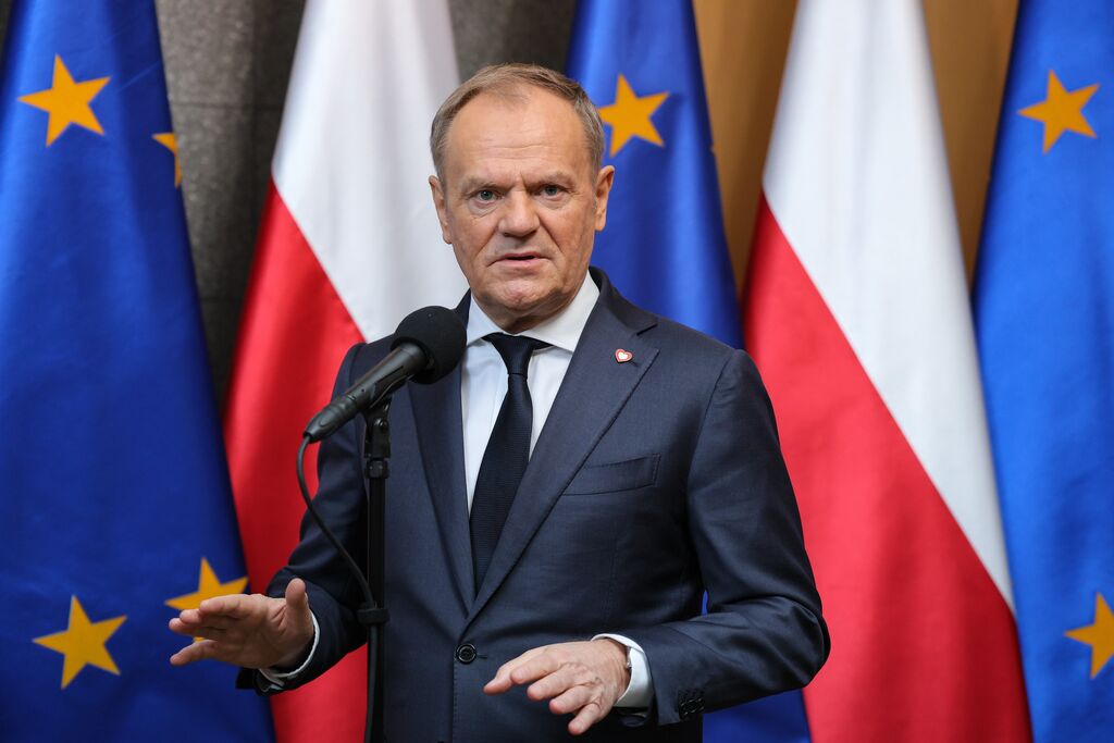 | Le Premier ministre polonais Donald Tusk s’exprime lors d’une conférence de presse à Varsovie. |