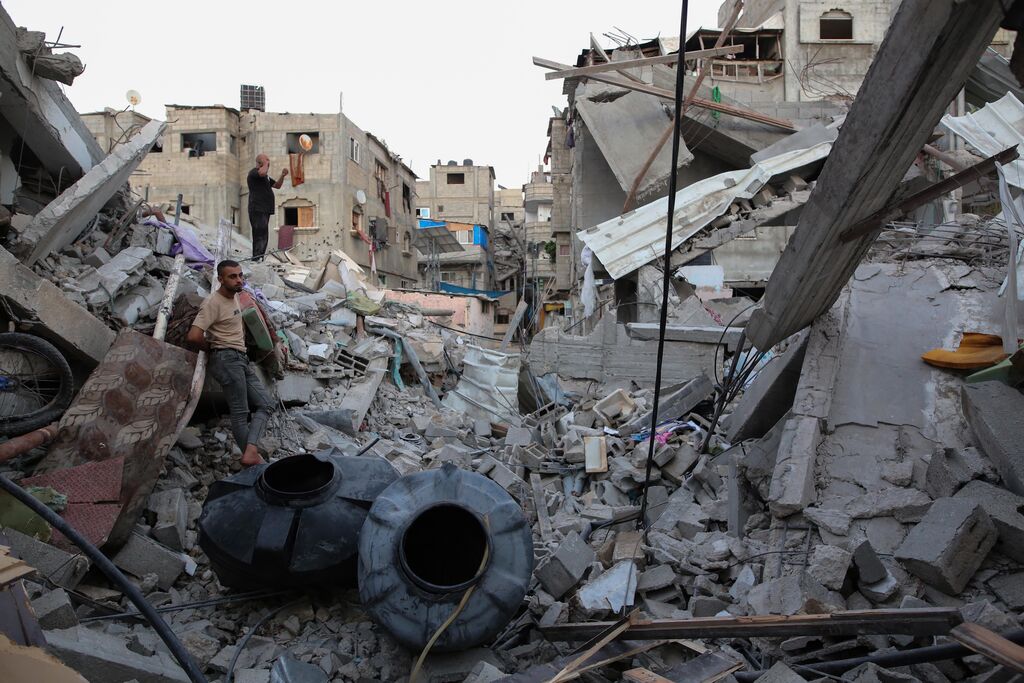 | Des ruines après les bombardements dans la bande de Gaza. |