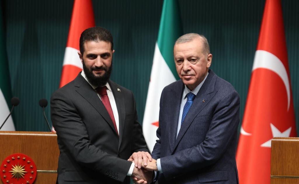 | Le président turc, Recep Tayyip Erdogan, (droite) et et le président syrien par intérim, Ahmed al-Charaa, le 4 février à Ankara. |