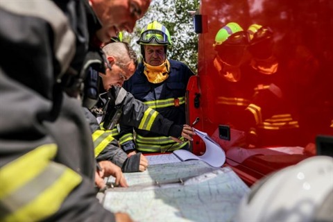 À Hostens, où le PC avait pris des airs d'auberge espagnole, le colonel roumain Cristian Buhaiànu assurait que ses 77 pompiers - uniformes à bretelles rouges, casquettes et camions floqués +pompierii+ - étaient "prêts à partir sur le terrain".