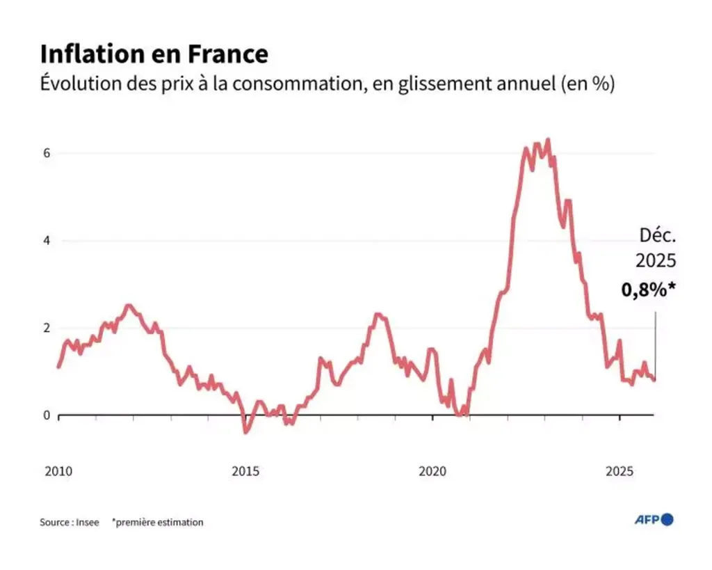 Sur un an, l’indice des prix à la consommation harmonisé (IPCH, qui permet les comparaisons entre les différentes inflations de la zone euro) augmenterait de 0,7% en décembre 2025, après +0,8% en novembre. Sur un mois, il rebondirait de 0,1%, après un recul de 0,2% le mois précédent.