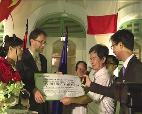À cette occasion, le consulat général de France a remis le premier prix du concours “France, je t’aime” à Nguyên Thai Hoà, un jeune ingénieur originaire de HCM-Ville qui travaille actuellement au Havre, en France. Ce premier prix est un billet aller-retour pour Paris avec un séjour d’une semaine à Paris. Il est donc naturellement allé à son père, Nguyên Thai Binh. Le jury a été touché par les textes de Nguyên Thai Hoà qui expriment son attachement à la France et son souhait d’offrir un voyage à son père qui lui a transmis son amour de ce pays. Voici les titres de ses 4 textes, dont la lecture de l’un est enregistrée sur vidéo : La France, pays où sa chance est donnée à tout le monde, Une éducation orientée vers la France, Le conte de fée de ma vie (vidéo), Le vin n’est pas le seul alcool en France.