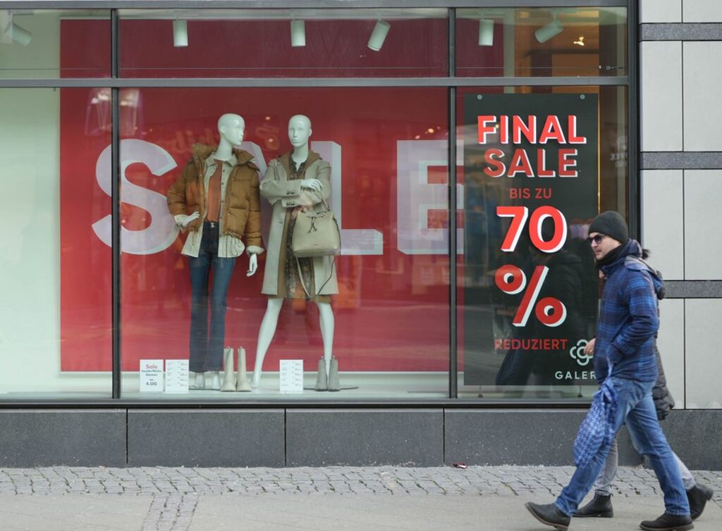 | Des gens passent devant un magasin à Berlin, la capitale allemande, le 2 mars 2023. |