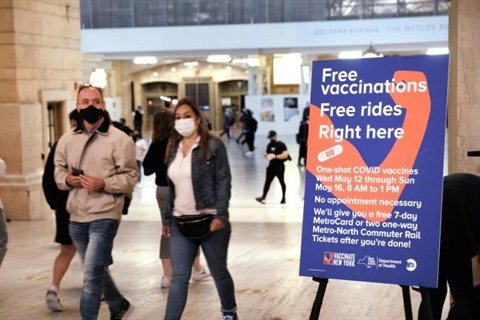 | Campagne de vaccination contre le COVID-19 à la gare de Grand Central à New York, le 12 mai. |