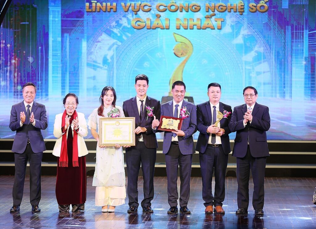 | Le Premier ministre Pham Minh Chinh (1er à droite) remet le Premier prix dans le domaine des technologies numériques aux lauréats. |