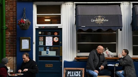 | Des clients attablés à l'extérieur d'un restaurant à Londres, le 15 décembre 2020. |