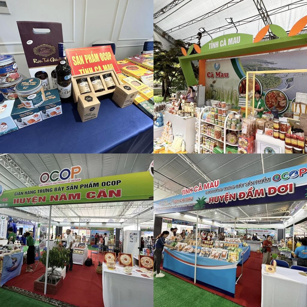 | Des produits certifiés OCOP (À chaque commune, son produit) de plusieurs districts de Cà Mau exposés lors des événements de promotion commerciale au niveau provincial et régional. |