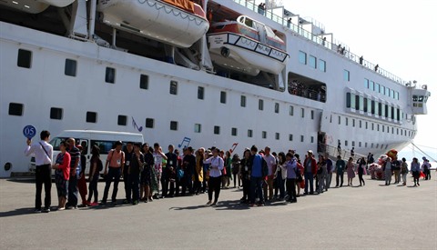 | Des touristes étrangers au port de Tiên Sa, à Dà Nang (Centre). |
