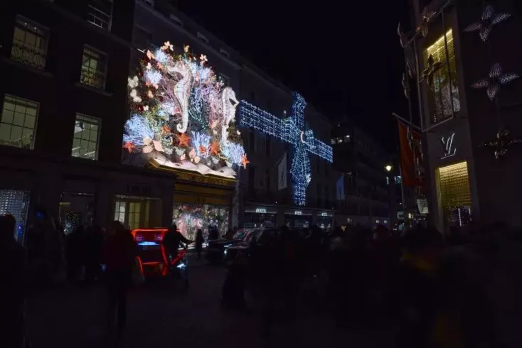 | Des décorations de Noël sur Old Bond Street à Londres, le 6 décembre. |
