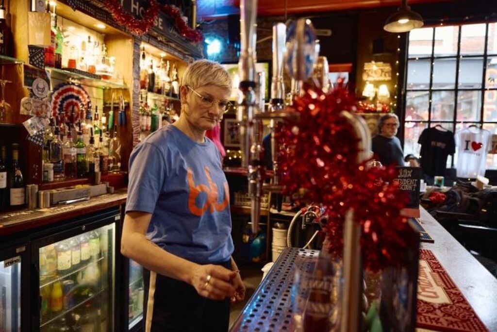 | La propriétaire du pub The Old Ivy House, Kate Davidson, au comptoir à Clerkenwell, Londres, le 15 décembre. |