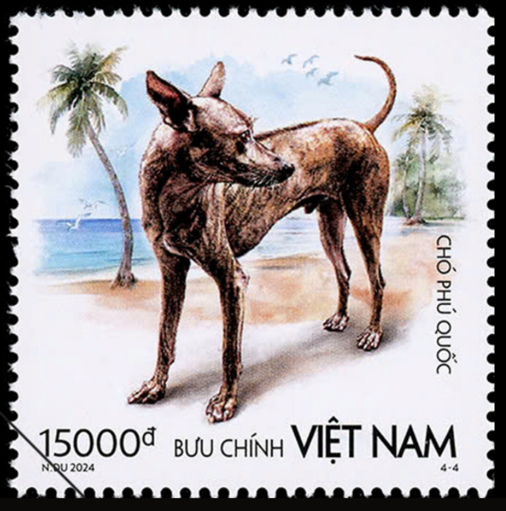 Quant au chien de Phu Quôc, célèbre pour ses poils tourbillonnants et ses membranes nageuses entre les orteils, il est surtout présent sur l’île de Phu Quôc, dans la province de Kiên Giang. Un timbre le montre avec la magnifique plage de Phu Quôc en toile de fond.