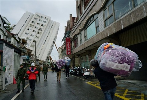 Un immeuble affaisé après un violent séisme, dans la ville de Hualien, le 8 février à Taïwan (Chine). Photo : AFP/VNA/CVN |
