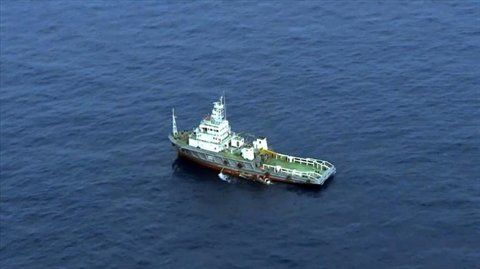 | Un navire cherchant des débris du vol MS804 en Méditerranée, le 21 mai |