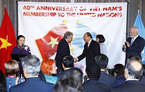 Le même jour, le Premier ministre Nguyên Xuân Phuc a participé à une cérémonie marquant le 40e anniversaire de l’adhésion du Vietnam à l’ONU. L’événement a eu lieu en présence du secrétaire général de l’ONU, Antonio Guterres, du président de la 71e session de l’Assemblée générale de l’ONU, Peter Thomson, de hauts officiels de l’ONU, ainsi que d’ambassadeurs et chefs de Missions de nombreux pays.