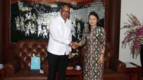 | La présidente de l’Union des femmes du Vietnam, Nguyên Thi Thu Hà, et l’ambassadeur cubain au Vietnam, Herminio Lopez Diaz |