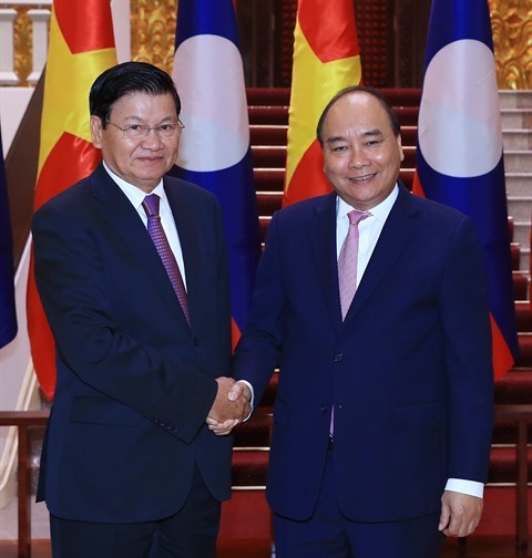 | Le Premier ministre vietnamien Nguyên Xuân Phuc (droite) et son homologue laotien Thongloun Sisoulith, le 13 septembre à Hanoï. |