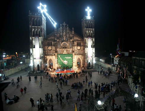 | La cathédrale So Kiên, dans la province de Hà Nam, lors de la nuit du Noël |