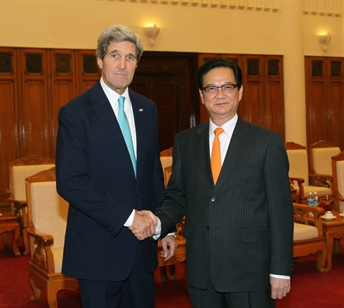 | Le Premier ministre vietnamien Nguyên Tân Dung (droite) et le secrétaire d'État américain John Kerry, le 16 décembre 2013 à Hanoi.Photo : Duc Tam/VNA/CVN |