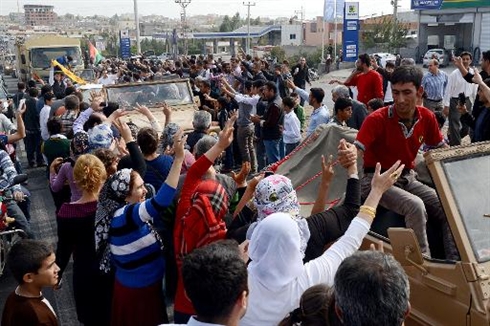 Un autre convoi d'une quarantaine de véhicules, chargés d'armes lourdes, est arrivé dans le même temps en Turquie, où ils ont été accueillis par des milliers d'habitants kurdes sur leur chemin en direction de la province de Sanliurfa.
