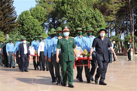 | Cérémonie d'inhumation des soldats volontaires et experts vietnamiens tombés au Cambodge, le 28 avril à Dak Lak (hauts plateaux du Centre). |