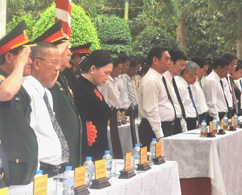 | Cérémonie d'enterrement des ossements d'une centaine de soldats tombés au champ d'honneur pendant la guerre anti-américaine, le 31 août à Nhon Trach. |
