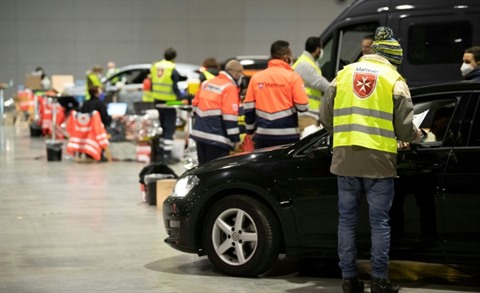 | Un centre de vaccination contre le COVID-19 en drive-in, le 17 décembre 2021 à Stuttgart, en Allemagne. |