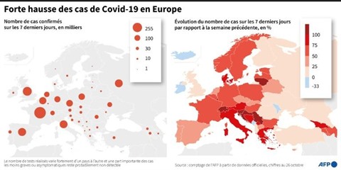 Les autres États de l'UE sont sur une trajectoire identique, à l'exemple de la République tchèque, qui va imposer de mercredi 28 octobre au 3 novembre un couvre-feu de 21h00 à 04h59.