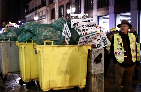 Selon le ministère de l'Emploi, la pension moyenne de retraite a atteint en novembre les 1.106 euros mensuels, en augmentation de 3,40% par rapport à l'an passé. Mais "ici, il y a plus de trois millions de retraités qui touchent moins de 400 euros par mois, c'est pourquoi nous réclamons une pension minimale, de 1.080 euros par mois", expliquait Angel Luis Parra, 62 ans, ancien ouvrier dans la construction, derrière la banderole de son syndicat Co-Bas, clamant "comme en France, la lutte est dans la rue".