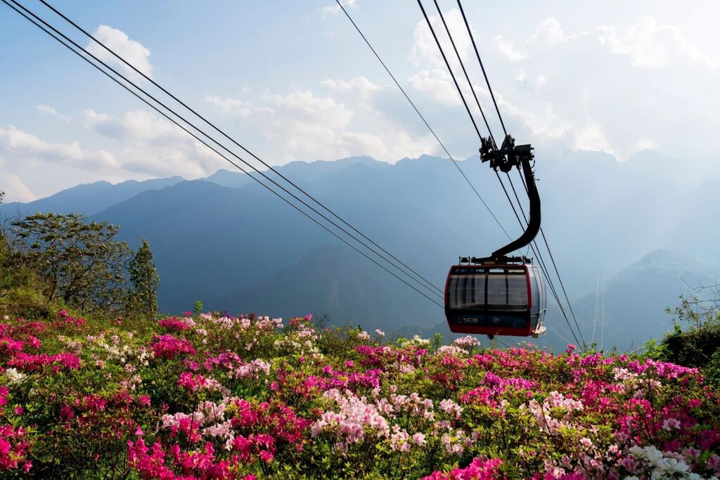 En plus des randonnées, les visiteurs peuvent emprunter le téléphérique Sun World Fansipan Legend jusqu’au sommet de la montagne, transformant ainsi une randonnée traditionnelle de trois jours en un trajet de seulement 15 minutes. Depuis le point de vue panoramique du chalet, les visiteurs peuvent admirer un panorama fascinant de cumulus tels des boules de coton blanches et duveteuses dans le ciel, et de vastes forêts ornées de fleurs de rhododendrons rouges, roses, blanches et jaunes.