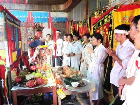 La mort est un événement marquant de la famille et même à l’échelle du village. Les funérailles sont en grande partie prises en charge par la société d’entraide villageoise (hôi làng), appelée encore société pour les funérailles (hôi hiêu). Un grand rôle est joué par les sorciers Thày Tào (ou Vo Tào). Le maître sorcier ou Say commande un groupe (Luc So) de cinq à six disciples qui jouent de la musique et chantent aux cérémonies. Plus ou moins lettré, il lit les idéogrammes chinois (han) et vietnamiens (nôm).