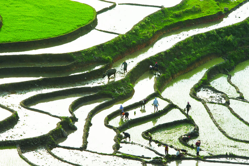 On appelle “la saison de mise en eau” car les rizières en terrasses de cette haute région n’ont qu’une récolte par an ; au début de l’été, les fortes pluies fournissent suffisamment d’eau pour les labourer.