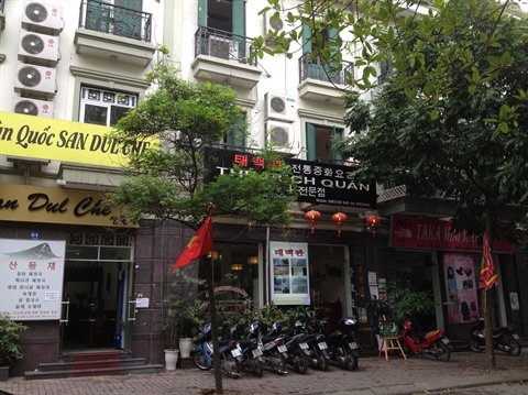 «Les Sud-Coréens dépensent beaucoup d’argent pour leurs divertissements ainsi qu’au restaurant. Après le travail, les hommes aiment s’y rendre pour boire un verre, parfois jusque très tard», explique Park Doong Sik, un Sud-Coréen vivant dans la rue Hoàng Ngân. La plupart des Sud-Coréens, même s’ils ont vécu longtemps au Vietnam, ne s’habituent pas à la gastronomie vietnamienne. Ils apprécient plutôt les plats piquants. Les spécialités sud-coréennes les plus connues, kimbab ou Tokbokki, sont donc servies dans les restaurants.