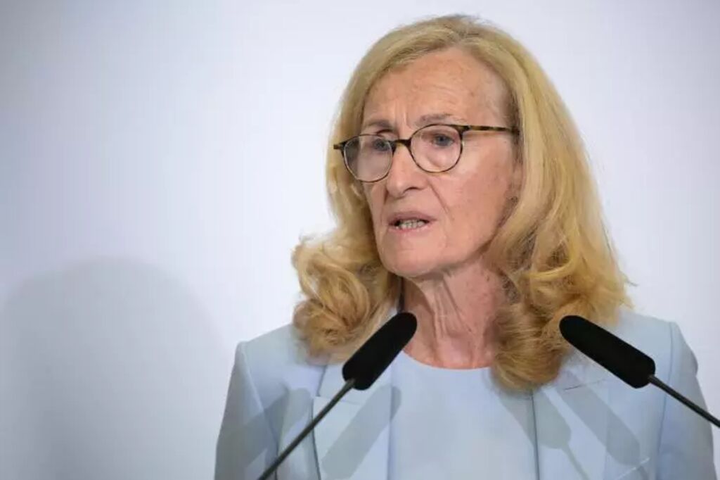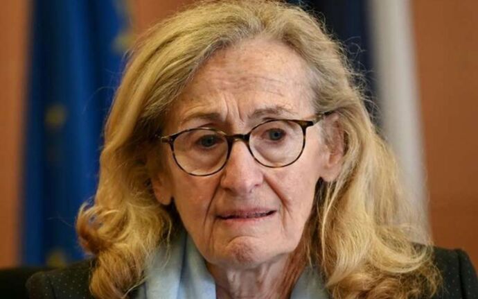 | La ministre démissionnaire de l'Education, Nicole Belloubet, lors d'une conférence de presse, à Paris, le 27 août. |