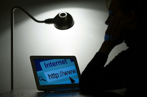 | Une femme devant son ordinateur, se connecte à internet à Paris. |
