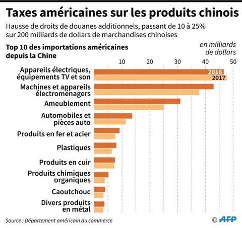L'augmentation de 10% à 25% des droits de douane supplémentaires porte sur des produits représentant environ 200 milliards de dollars de commerce annuel de la Chine vers les États-Unis, soit près de la moitié des ventes de Pékin à l'oncle Sam.