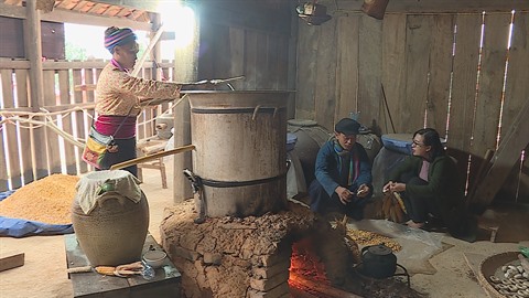 Après avoir être mélangés à la levure, les grains de maïs sont placés des tonneaux hermétiques conservés dans un endroit frais. Après 6-7 jours, les H’Mông commencent à mettre les grains fermentés dans une marmite pour extraire de l’alcool. "On doit apprendre l’utilisation de la levure de feuilles qui est difficile. La fermentation des grains de maïs doit suivre un protocole strict", souligne Sùng Chua Rinh, du district de Vi Xuyên, province de Hà Giang.