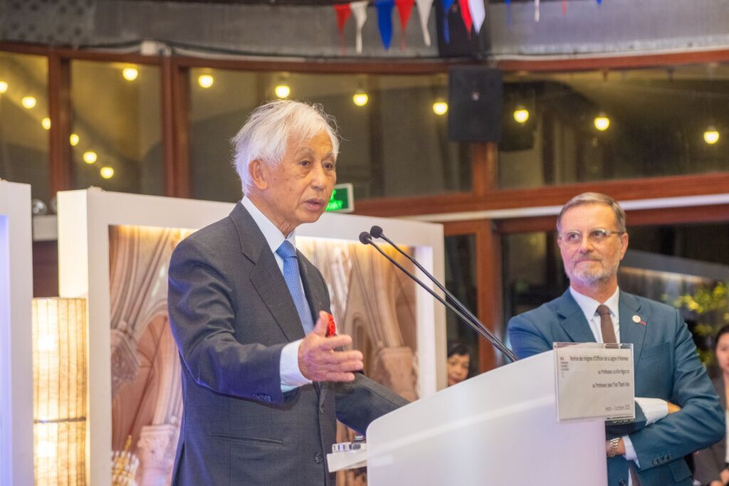 | Le Professeur Trân Thanh Vân à la cérémonie de remise de l'Ordre de Légion d'honneur, le 3 octobre, à l’ambassade de France à Hanoï. Photo : ICISE/CVN |