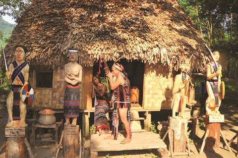 Semblable au nhà rông, sorte de maison commune des villages de diverses ethnies minoritaires des hauts plateaux du Centre, le nhà Guol fait la fierté des Co Tu. Une belle construction architecturale servant de lieu de réunion et d’activités cultu-relles communautaires où les montagnards prennent soin d’exposer leurs œuvres d’art en bois : statues, bas-reliefs, gravures, peintures, motifs ornemen-taux gravés sur les colonnes et arbalétriers… Dans une certaine mesure, le nhà Guol est considéré comme un patrimoine architectural ancestral des Co Tu.