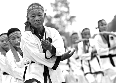 | Démonstration de taïchi par des personnes âgées de Hanoi. |