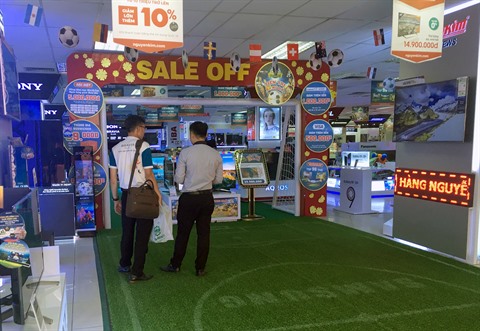Les chaînes de vente au détail telles que Nguyên Kim, Diên May Xanh et Thiên Hoa ont déclaré que depuis la Télévision nationale du Vietnam (VTV) s’est procurée les droits de retransmission en direct de la Coupe du monde 2018, la vente des postes de télévision neufs a augmenté d’environ 30%. Selon Trân Huu Quân Anh, directeur de vente de la chaîne électronique de Thiên Hoa, les écrans grande taille, de plus de 55 pouces, sont les plus commandés notamment par les établissements de l’hôtellerie tels que les cafés et les restaurants.
