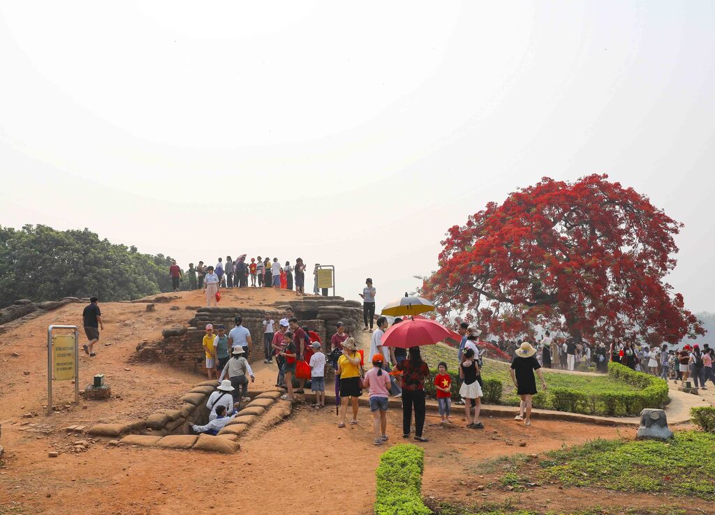 | Visiteurs sur la colline A1, un site historique et touristique de la province de Diên Biên (Nord-Ouest). |