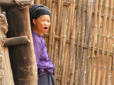 Les enfants nous amènent dans une famille Lolo noir où nous passons la nuit. À l’escalier de la maison sur pilotis, la famille de 5 personnes nous accueille chaleureusement (mamie, son fils, sa belle-fille et deux petits enfants). Avec le beau sourire qui montre les rangs de dents noires - la beauté traditionnelle ici, mamie nous montre où on dort, où on mange et où on se lave, …