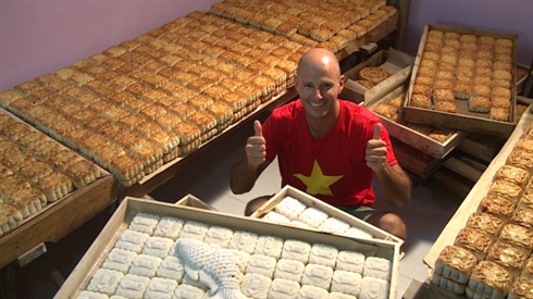 | Les touristes étudient la fabrication des gâteaux de lune, dans le programme «Vietnam Discovery» (chaîne Arirang) |
